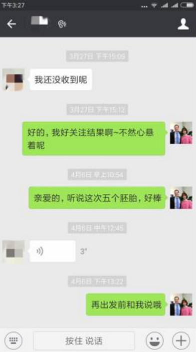 上个月,我们收到美国HRC新港诊所的反馈,杨女士得到了5枚优质囊胚,3个男胚2个女胚,杨女士高兴坏了,这次真的是要成功了。
