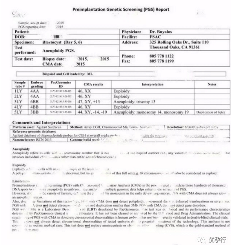 在2016年的春节,举家欢庆的节日里,我跟老公开始了我们的第二次美国行。这一次,养囊3个,同时,医生为我做了宫腔镜手术处理腺肌症的情况。同时出了方案,先闭经半年再过来移植。回国后,我们得到了囊胚PGS检测结果,5个囊胚里1个婴儿通过了PGS检测。对于45岁,在国内被判了死刑的我,这个结果让我惊喜万分!