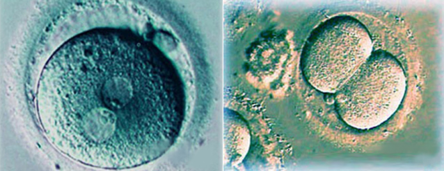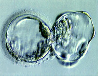 精子和卵子受精后形成一个细胞的胚胎 胚胎分裂为两个细胞